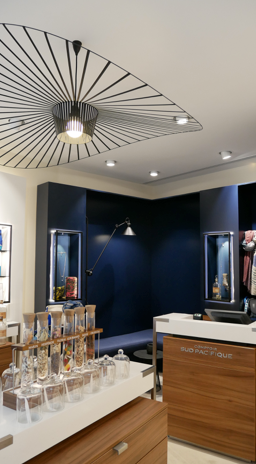 - Au centre, un bar à parfums met l’accent sur les matières premières et les nouvelles fragrances. Un décor intime dans lequel Valérie Pianelli Guichard, la nouvelle directrice et propriétaire, a imaginé conjuguer les créations olfactives à une collection de bijoux et accessoires qui invitent au voyage, élément intrinsèque à l’univers de Comptoir Sud Pacifique.